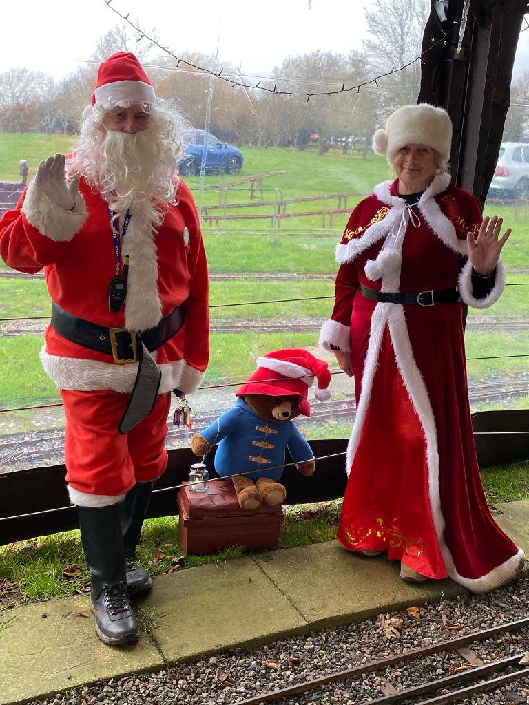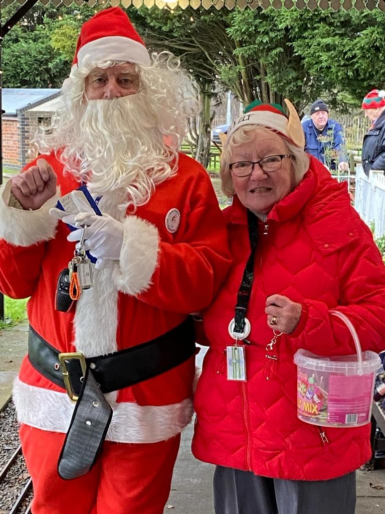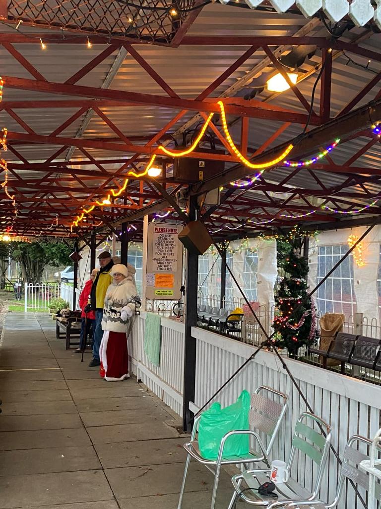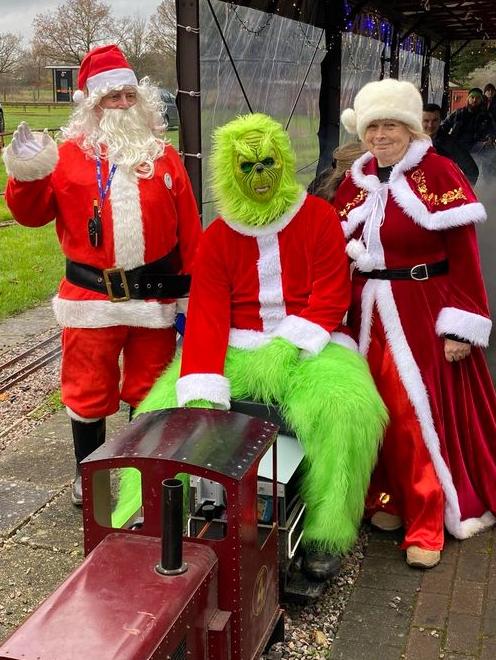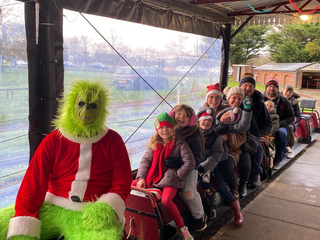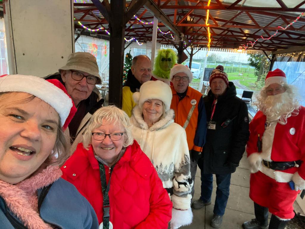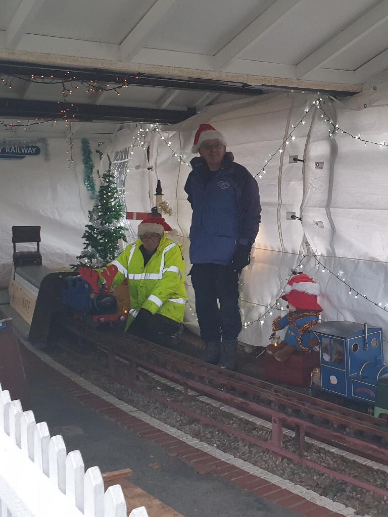 Going from top left hand corner. Getting the station ready. Mr Grinch having forty winks on our chairmans lap! The decorated station. Thats how many days are left. A family of generations enjoying the day. That's just about every volunteer. Far below right,the raised station photo booth. Our signalman. The station guardian keeping an eye on the place The ticket master and his helper The lower level platform staff. Left a family enjoying the day and directly below a members photogenic loco in the phot booth.