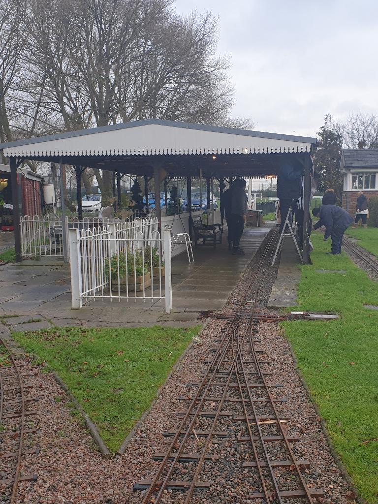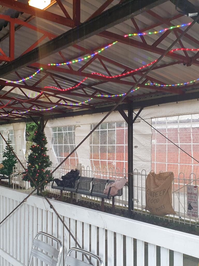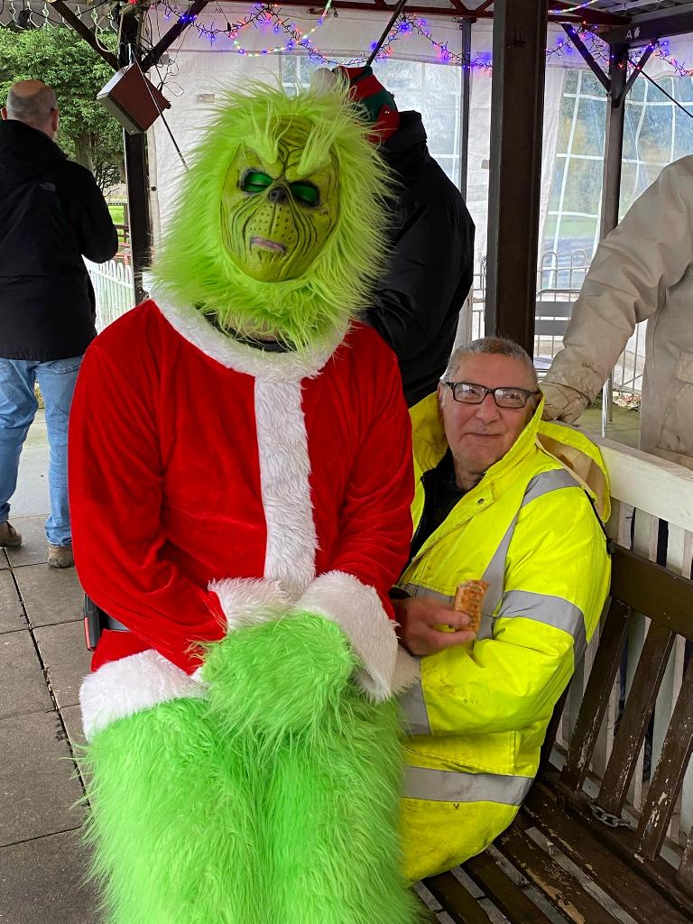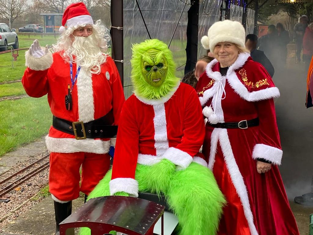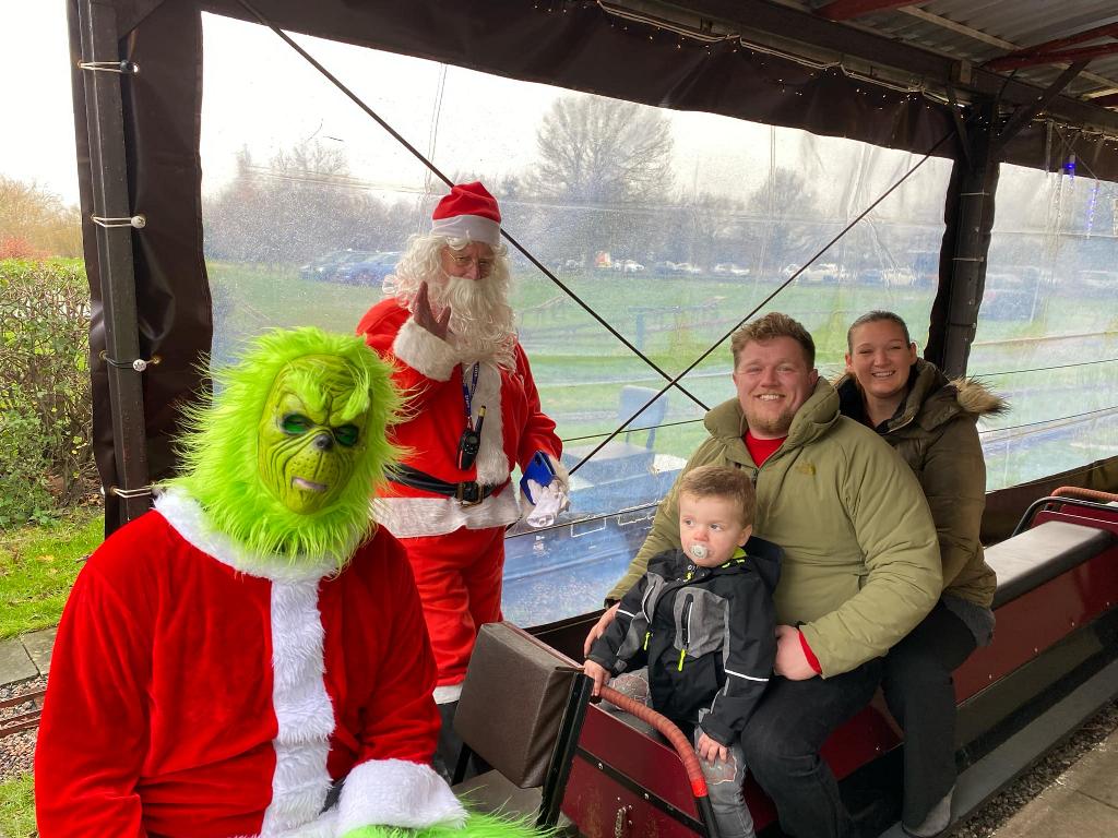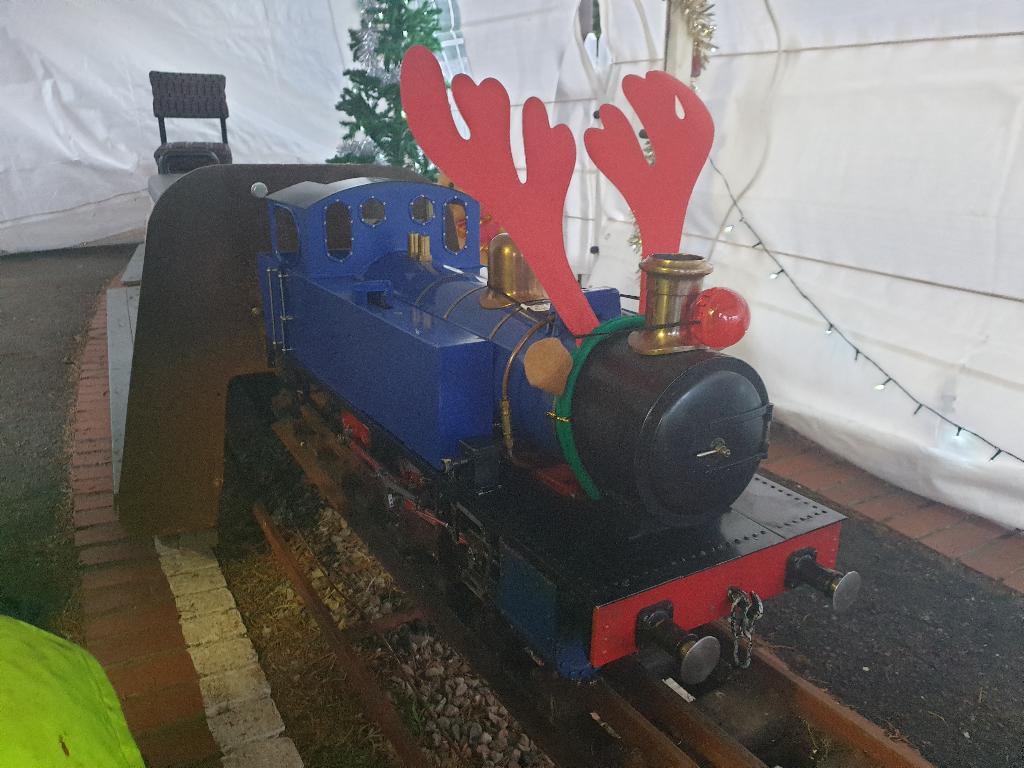 Going from top left hand corner. Getting the station ready. Mr Grinch having forty winks on our chairmans lap! The decorated station. Thats how many days are left. A family of generations enjoying the day. That's just about every volunteer. Far below right,the raised station photo booth. Our signalman. The station guardian keeping an eye on the place The ticket master and his helper The lower level platform staff. Left a family enjoying the day and directly below a members photogenic loco in the phot booth.