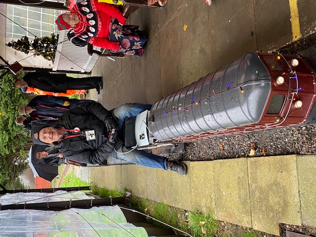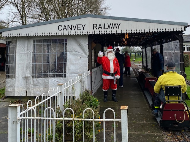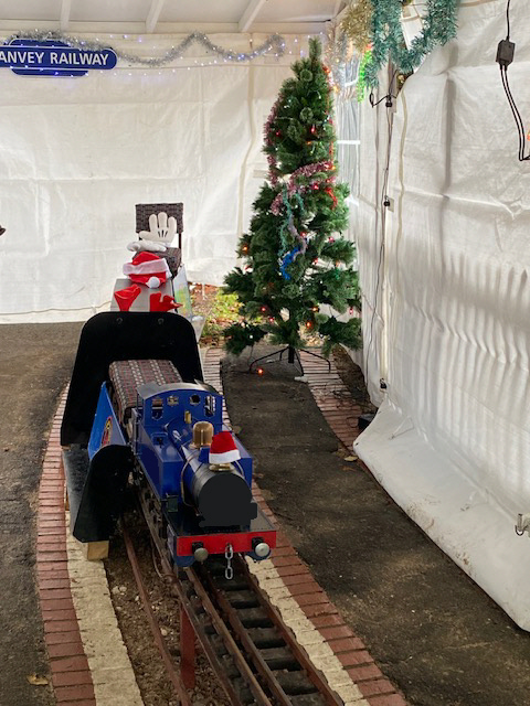 Going from top left hand corner clockwise. Outside lights beside the club house, first train of the afternoon in the rain, ticket seller all lovely and warm, Paddington acting as a raindeer, inside the photo booth, Santa welcoming people to the photo booth, Santa welcoming a train back and lastly the train in the photo booth.