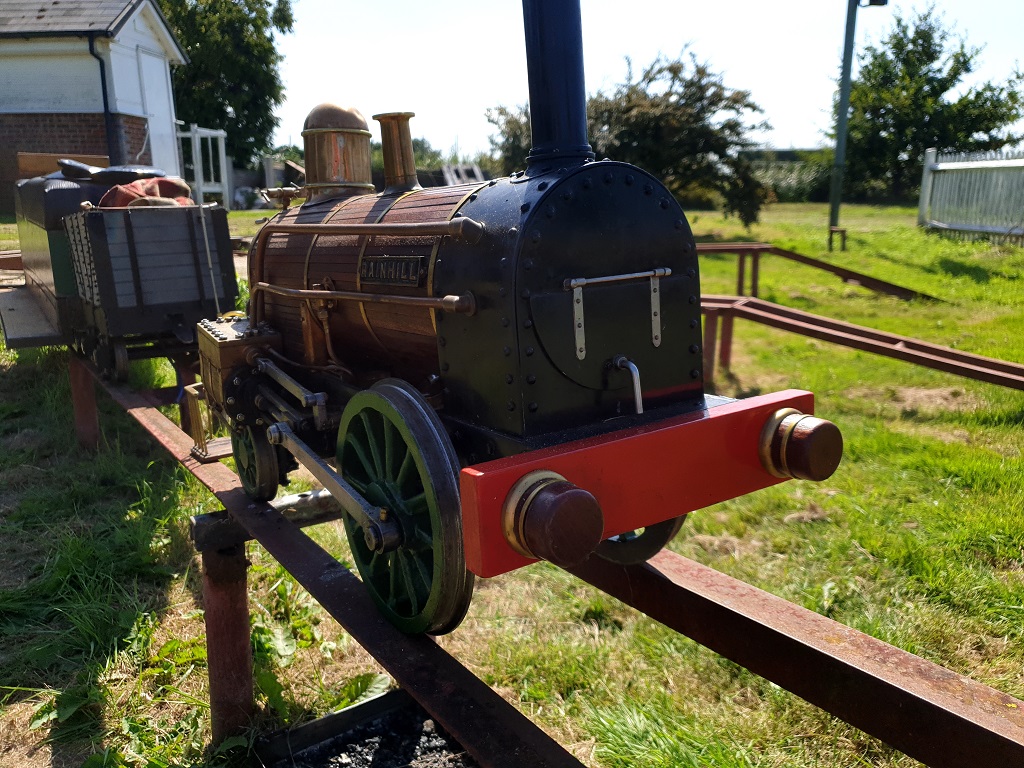 7 inch gauge 0-2-2 Rainhill was a 3 1/2” LBSC design. It was a freelance design but it was typical of locos following on from The Rocket. It was possibly another couple of decades before cylinders were in line with the wheels and at the front. Lion was an early one of these.