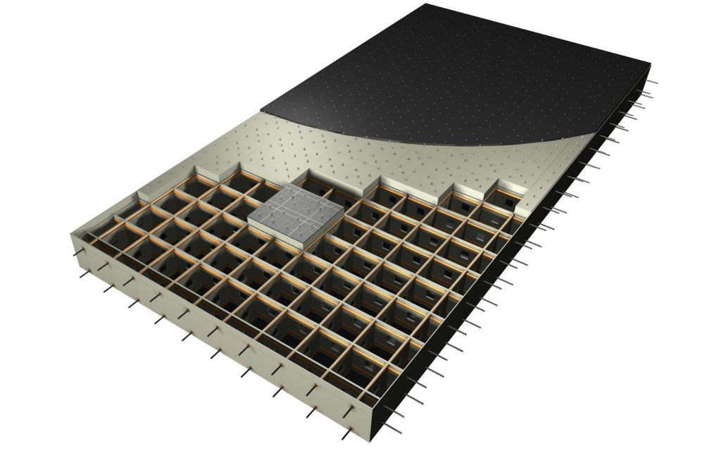 The airport with its runways and terminals is made up of floating pontoons with the pontoons held together with cabling held under tension. This entire block is held in place with piles. Each individual pontoon has pipes that goes from the very top to the very bottom of the pontoon. This enables rainwater to flow away rapidly and also allows access under the pontoon so silt levels can be monitored and disposed of if necessary.