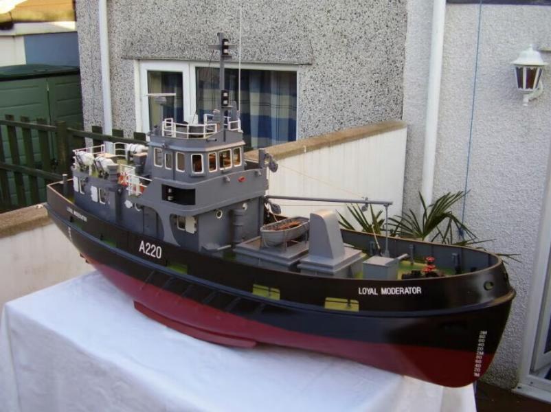 The model is based on Loyal Moderator as she was in August 1980. Photographs taken at that time of Loyal Mediator and Loyal Helper show them to be almost identical to Loyal Moderator. It is fair to assume that the other vessels of the Loyal Class, at that time, were not too dissimilar.