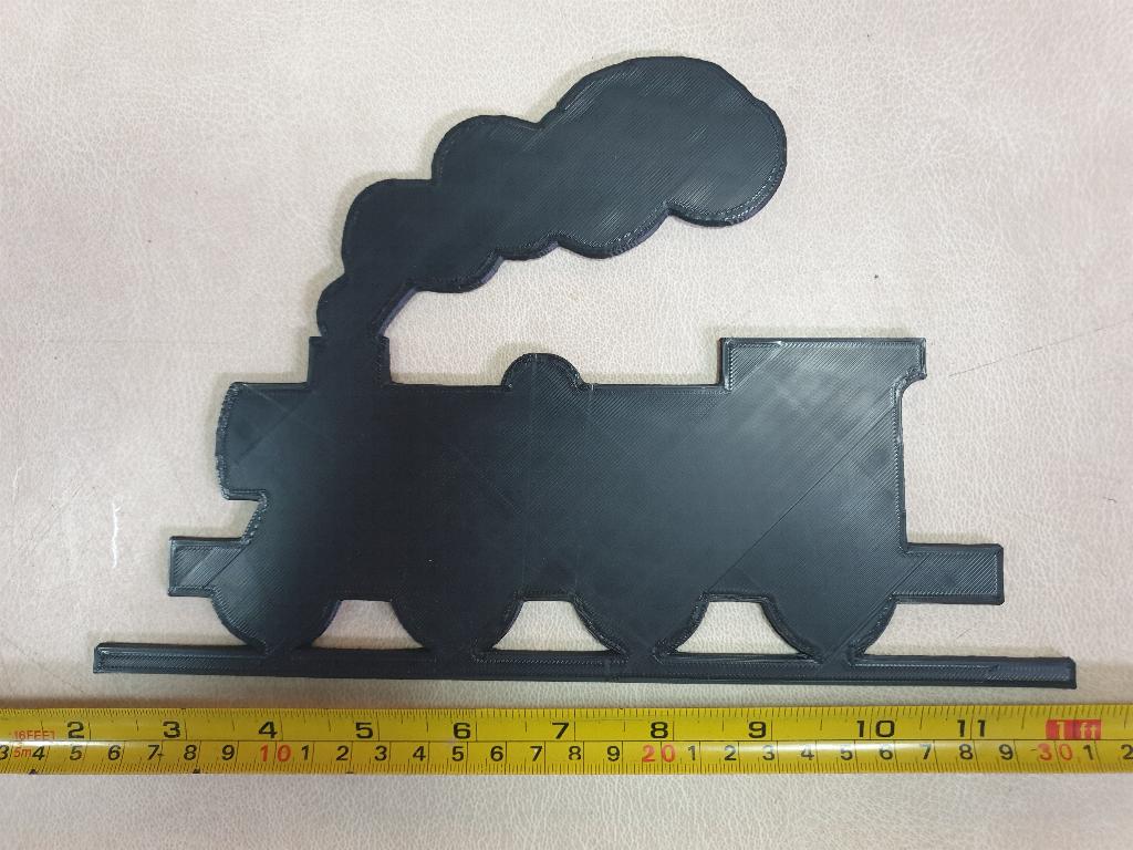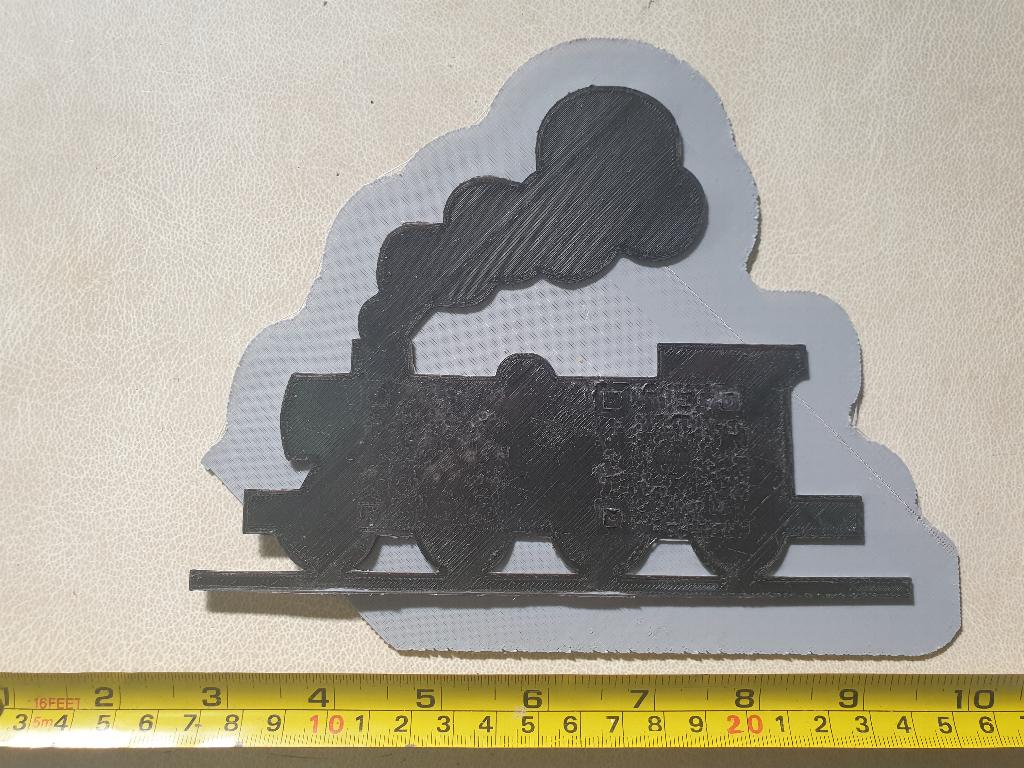Here is the first design for the train at the bottom of the sign. Dave decided to try a 2 colour print from a single colour machine. He reckons with a little more practice he will get it right |