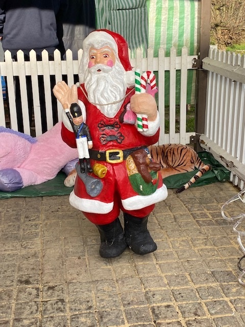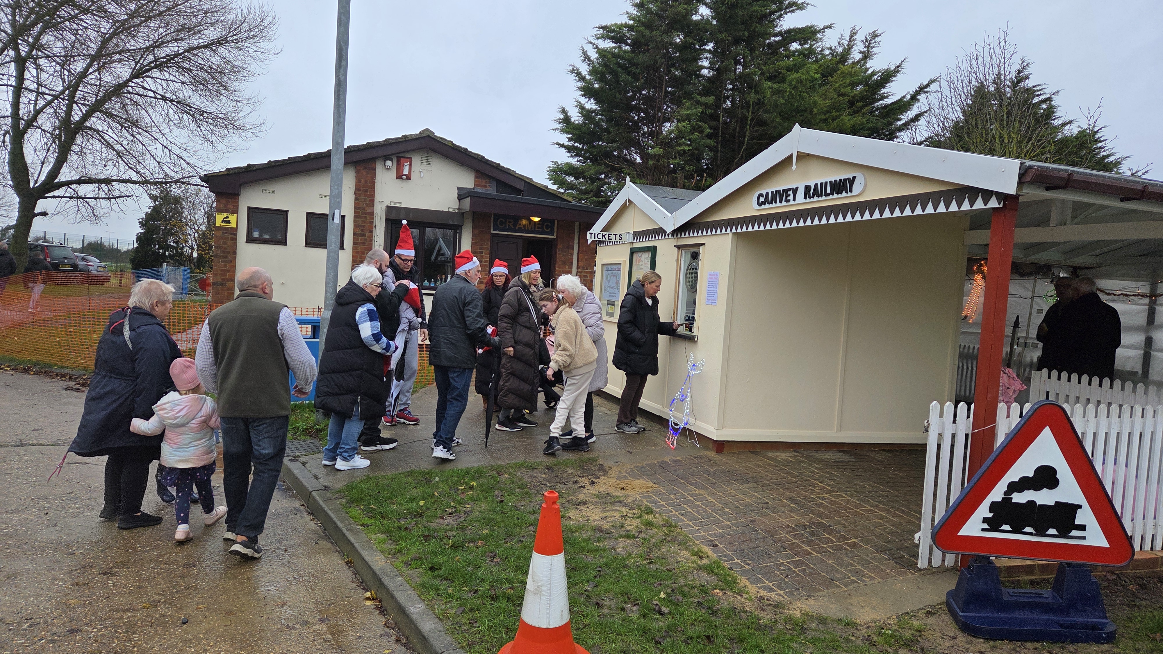 Going from top left hand corner clockwise. Outside lights beside the club house, first train of the afternoon in the rain, ticket seller all lovely and warm, Paddington acting as a raindeer, inside the photo booth, Santa welcoming people to the photo booth, Santa welcoming a train back and lastly the train in the photo booth.