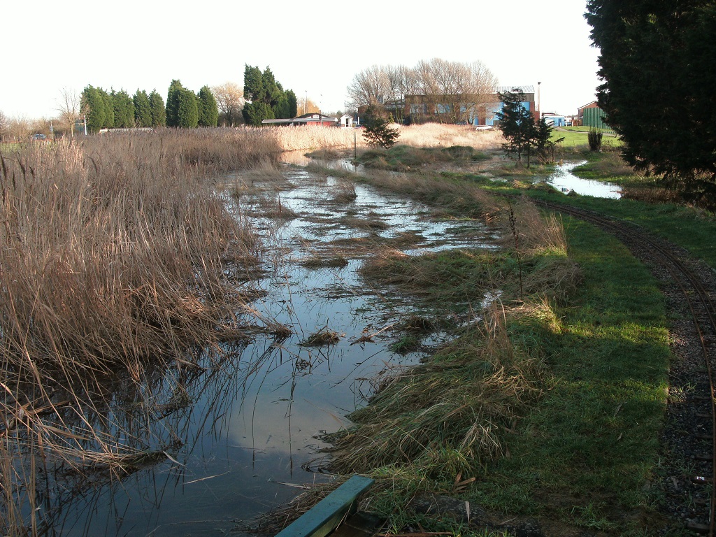 A view down the dyke towards the station and signal box |